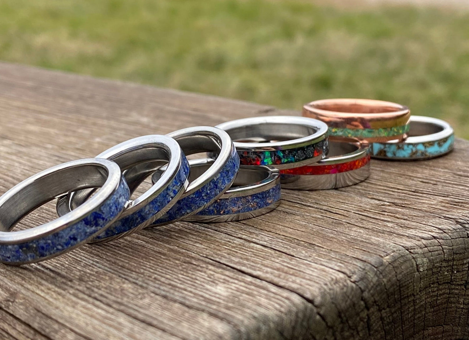 Gli anelli di questa sezione sono realizzati in Acciaio Damasco Inossidabile (304x316)