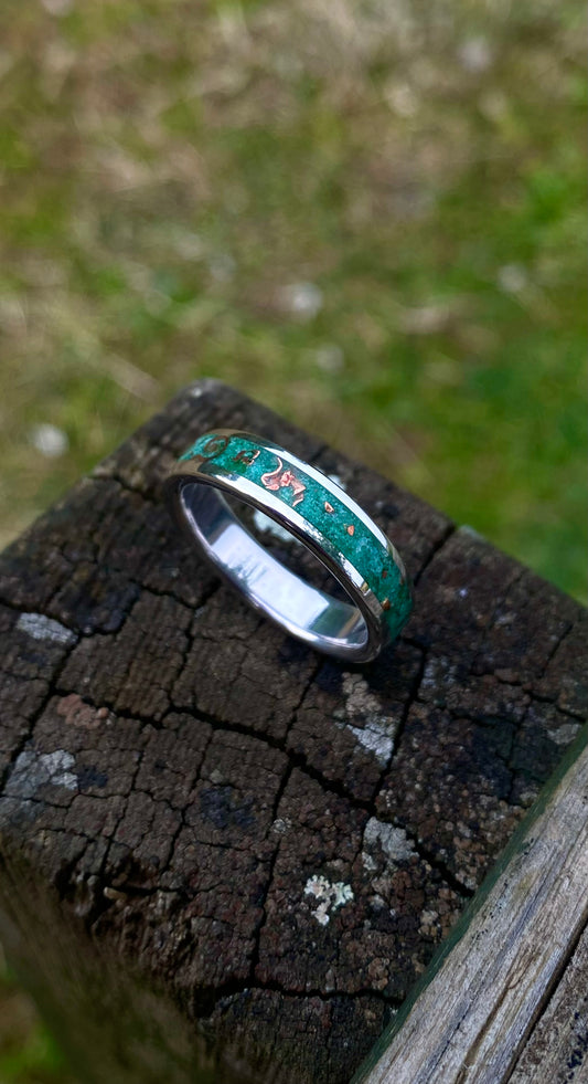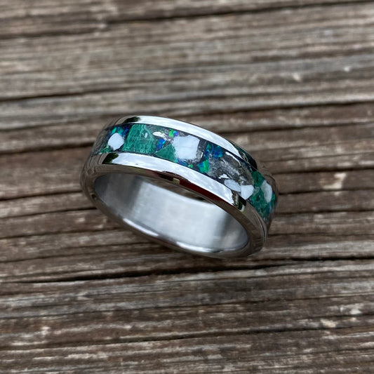 Anello di Malachite, Meteorite, Opale e Conchiglia