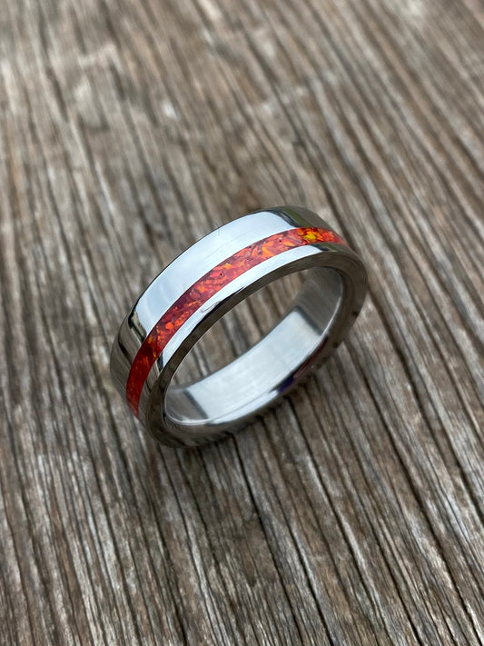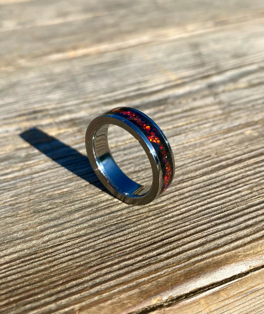 Anello di Opale "Crimson Red" - Intarsio Laterale