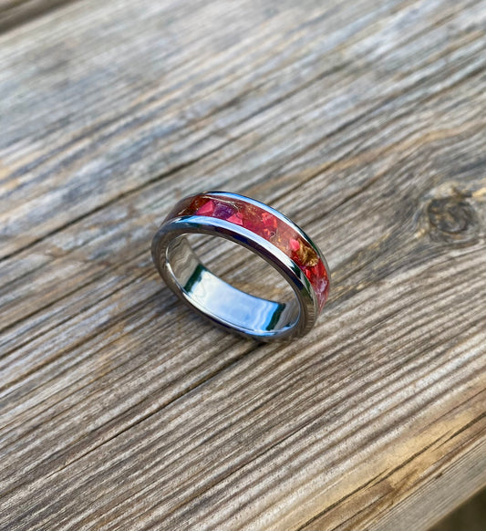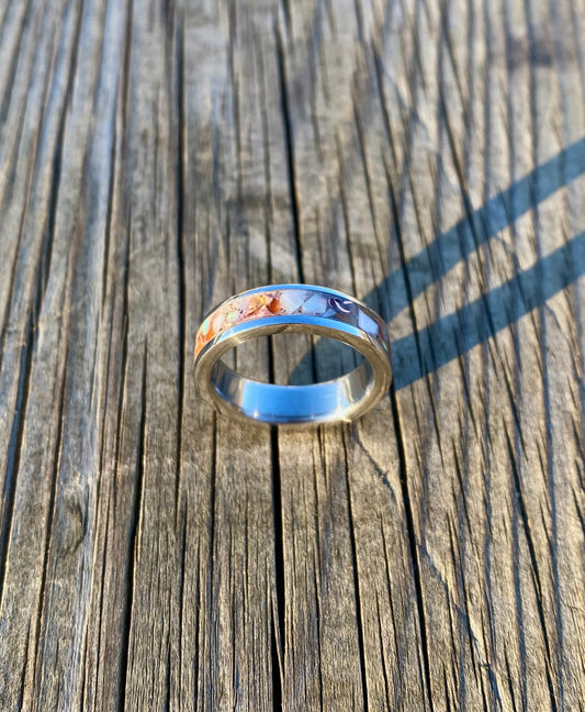 Anello di Opale, Corniola, Ottone, Agata Viola con Bronzite e Corallo