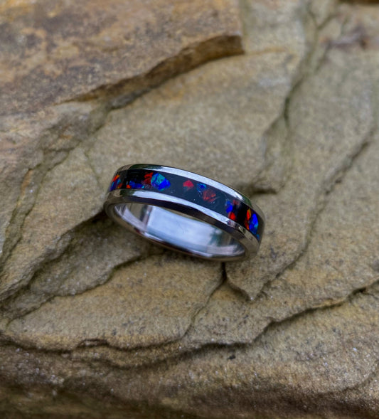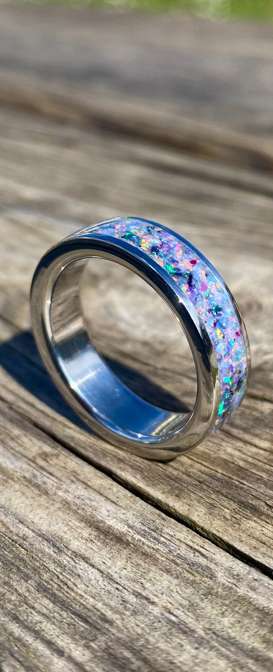 Fedina di Giada Verde, Opale e Trucioli di Mokume Gane