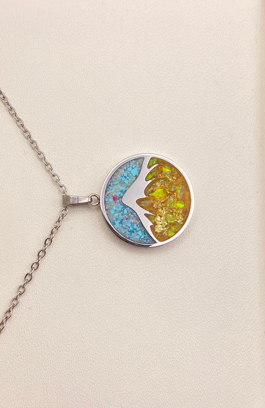 Pendente "mountain" - Collana di Opale, Foglia d’Oro e Turchese