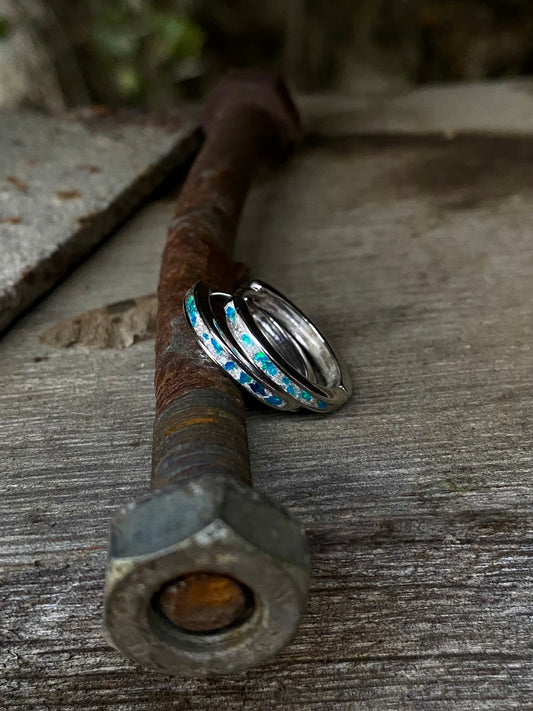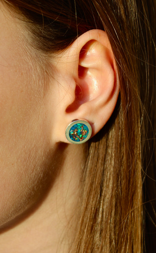 "Peacock Blue" Opal Earrings / Stud