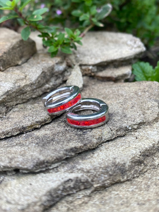 Opal Earrings “Crimson Red” / small