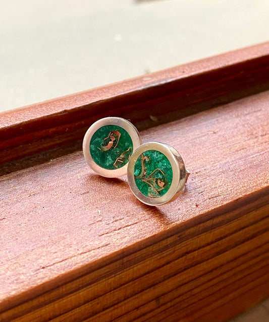 Jade and copper earrings / button