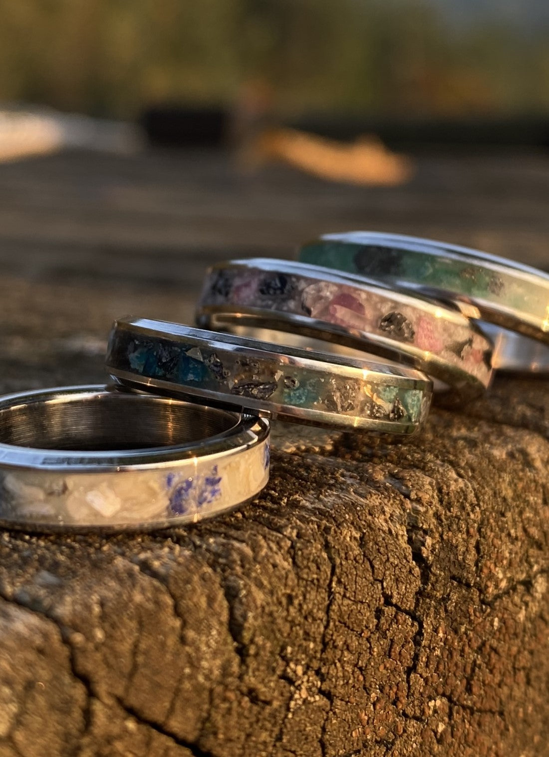 Anello con intarsio doppio di Amazzonite e Petali di Girasole / e Titanio